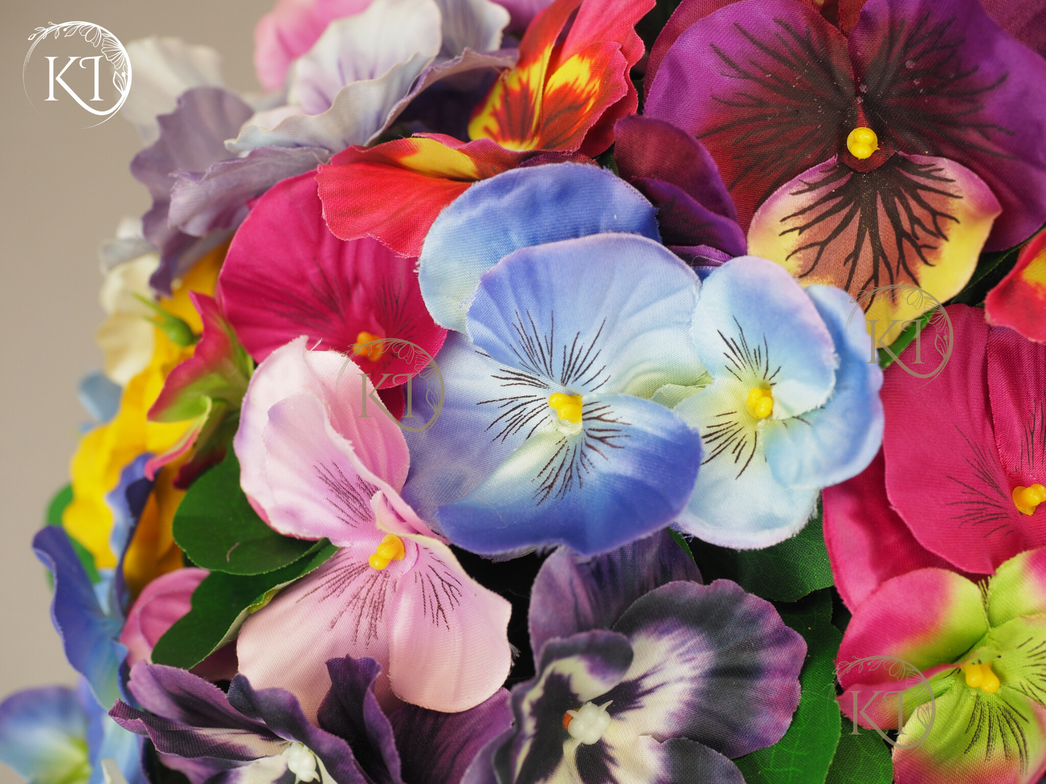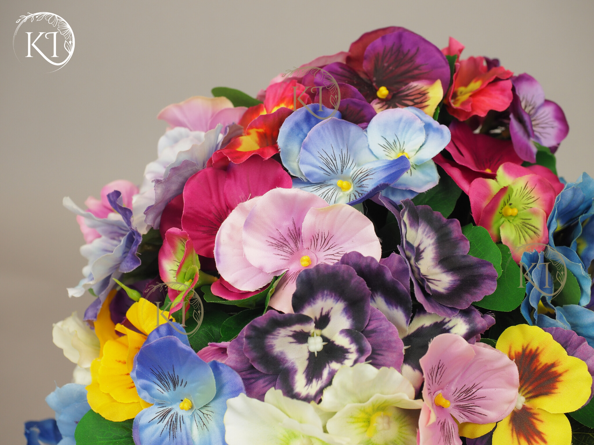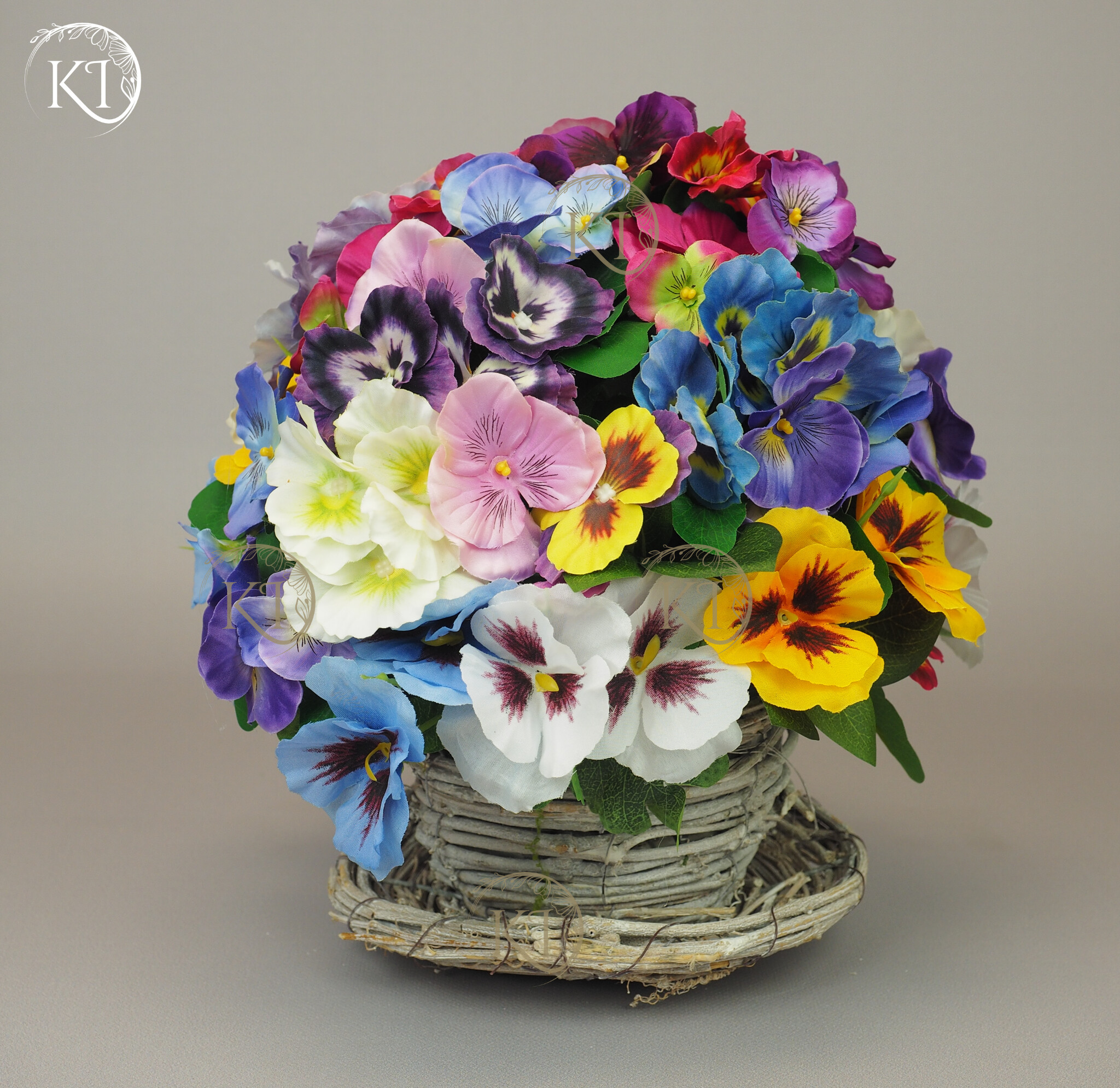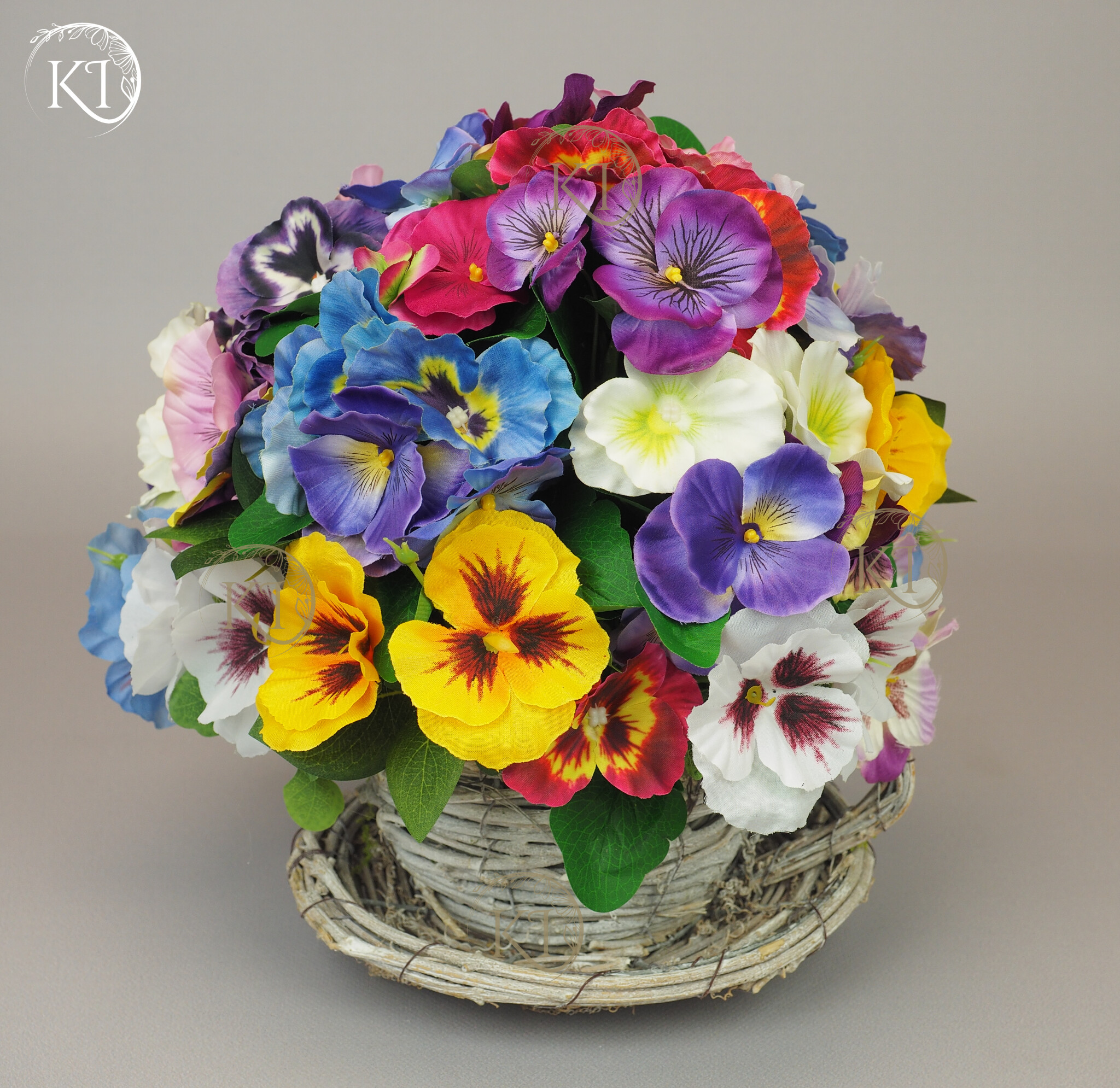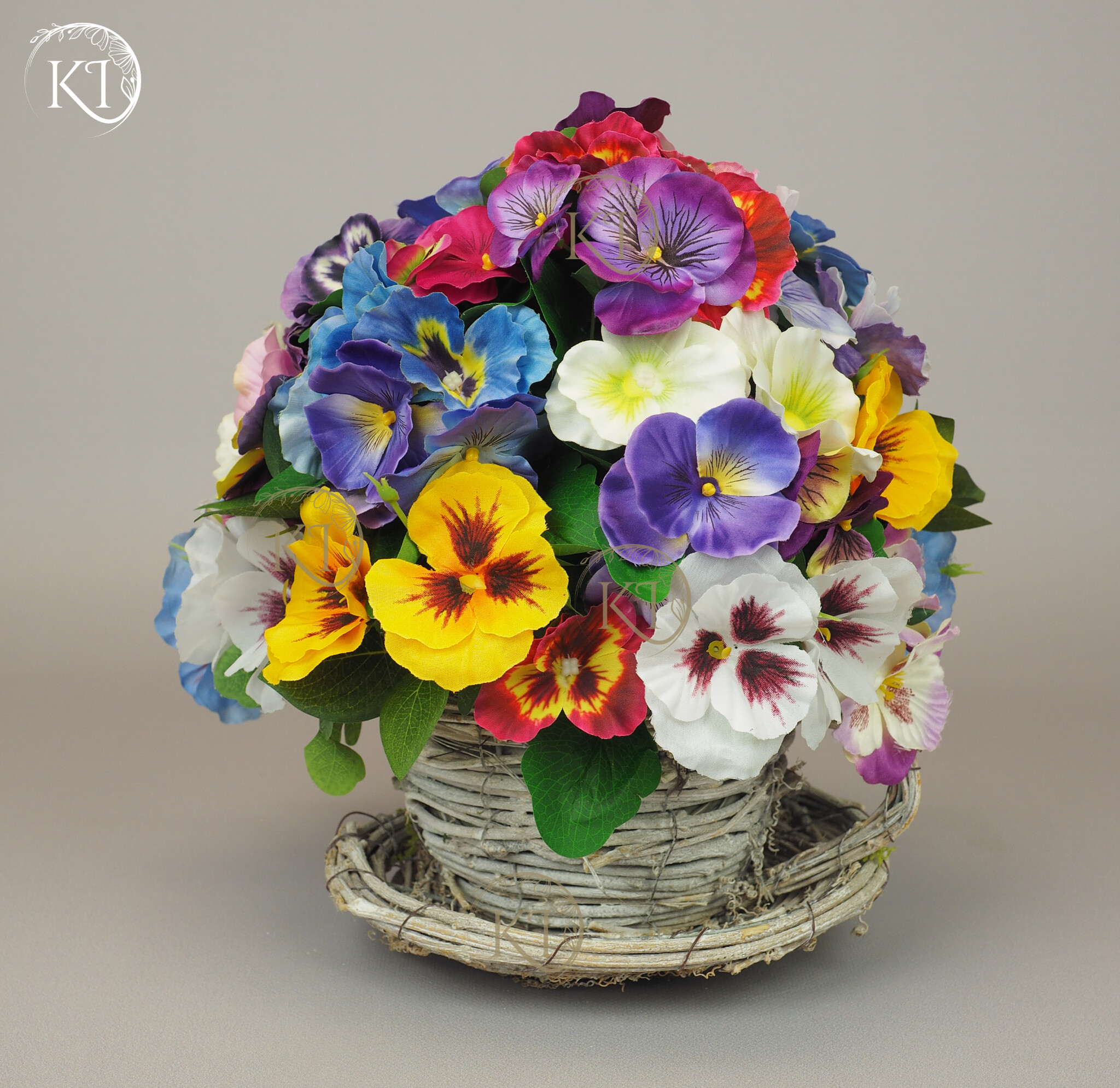 Uniwersalna kompozycja z kwiatów sztucznych wysokiej jakości, może być wykorzystana jako dekoracja nagrobna, lub dekoracja wnętrza domu, lub biura.